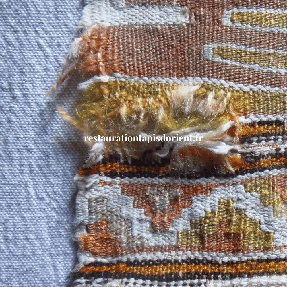 • Réparation de lisières, franges et points d’arrêt : retissage ou rechaînage pour renforcer les bords et éviter l’effilochage.